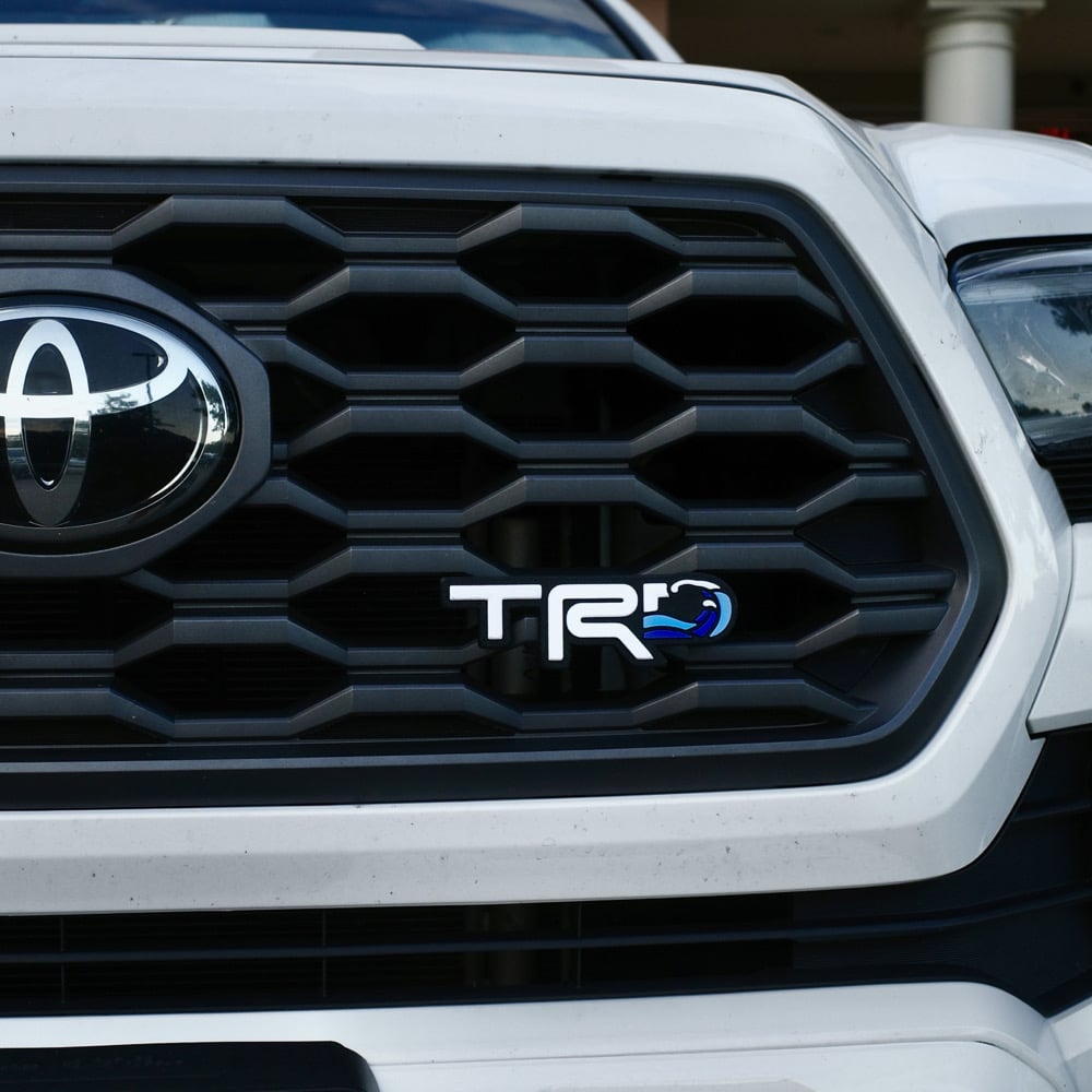 Catch waves, not feelings — A TRD badge with an oceanic twist. Constructed with 3D printed durable ABS and coated for additional UV protection. The grille mountable option features stainless steel, corrosion resistant hardware, allowing fitment for various grille options.